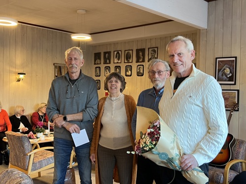 Kirsten takket de to som gikk ut av styret, Steinar og Ole og overleverte blomster på medlemsmøtet
